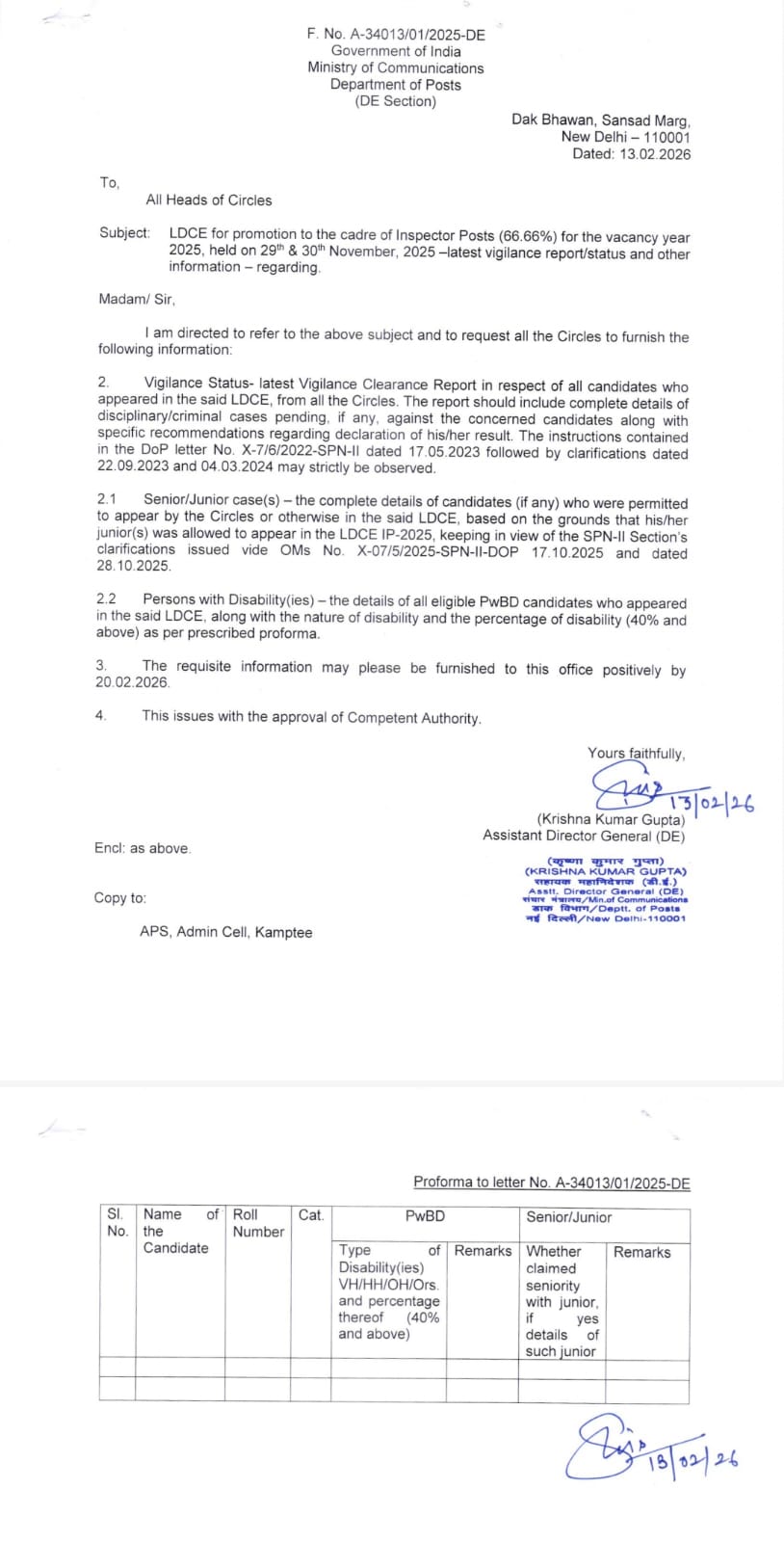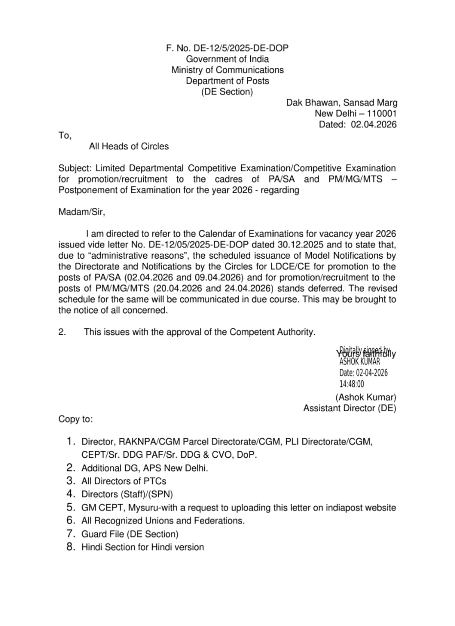 Periodical meeting with Secretary Posts on 10.3.2026 at 2.30pm.