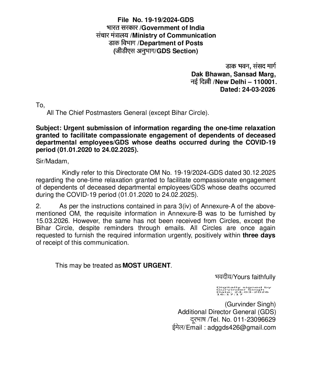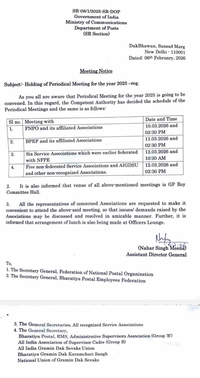 Periodical meeting with Secretary Posts on 10.3.2026 at 2.30pm.