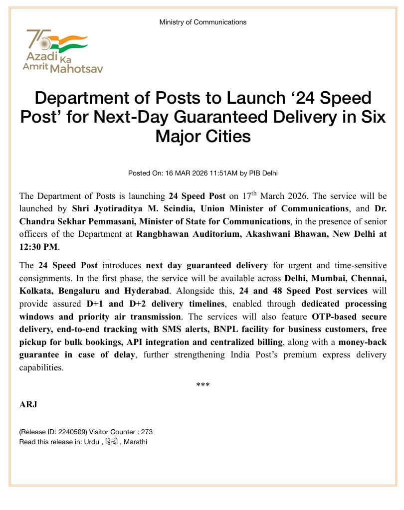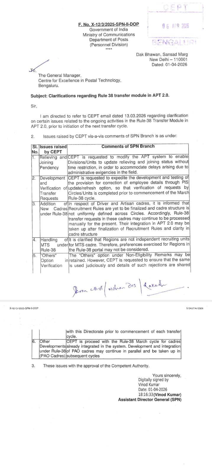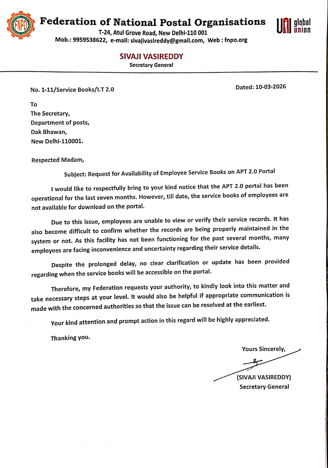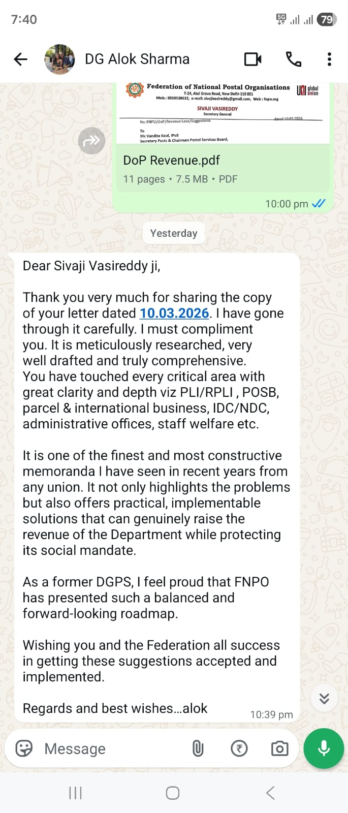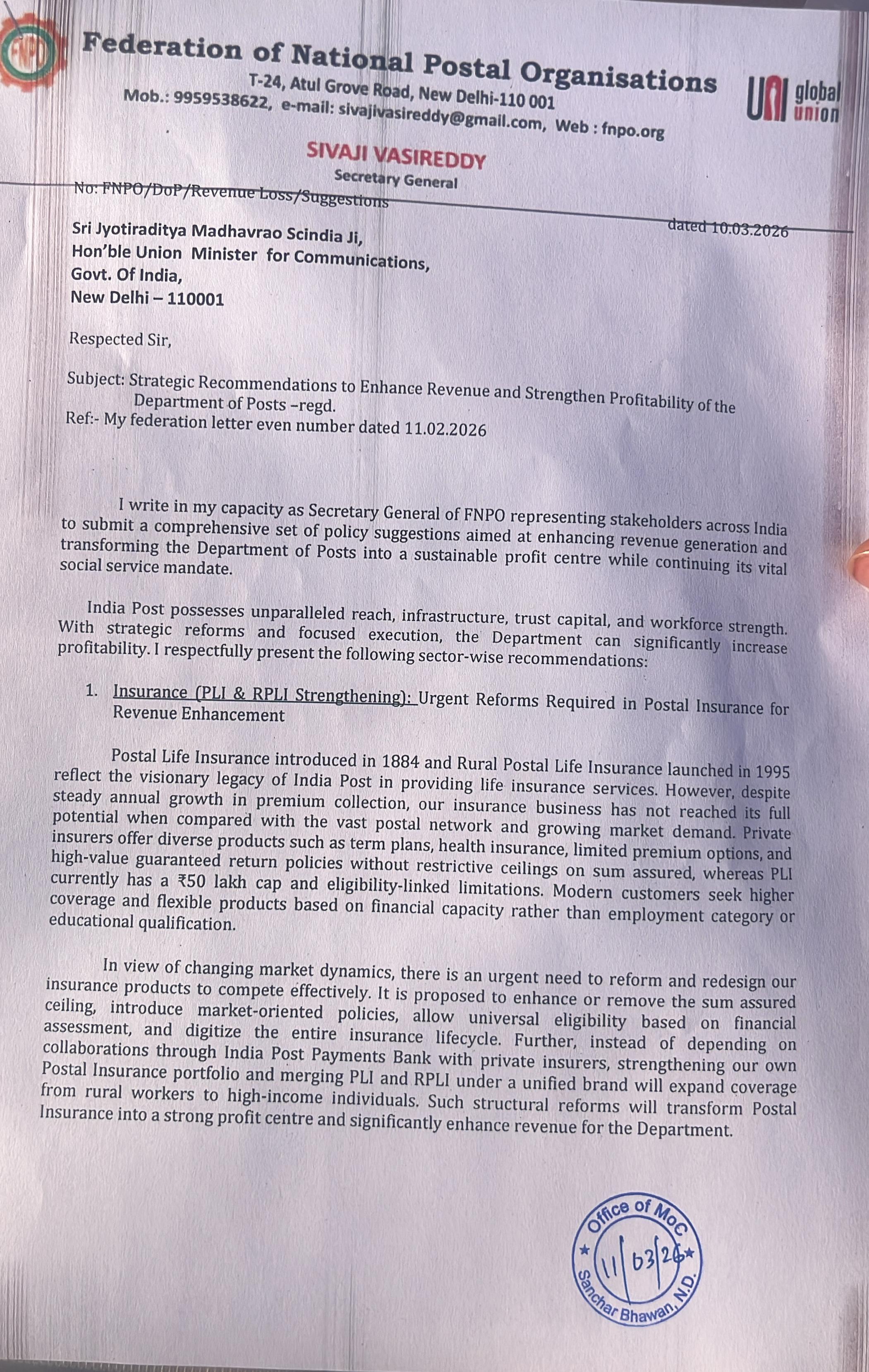 Former DG Alok Sharma Ji comments about FNPO letter dated 10.3.26 to MoC, MoSC and Secretary Post regarding Suggestions for increase DoP revenue.12/03/2026