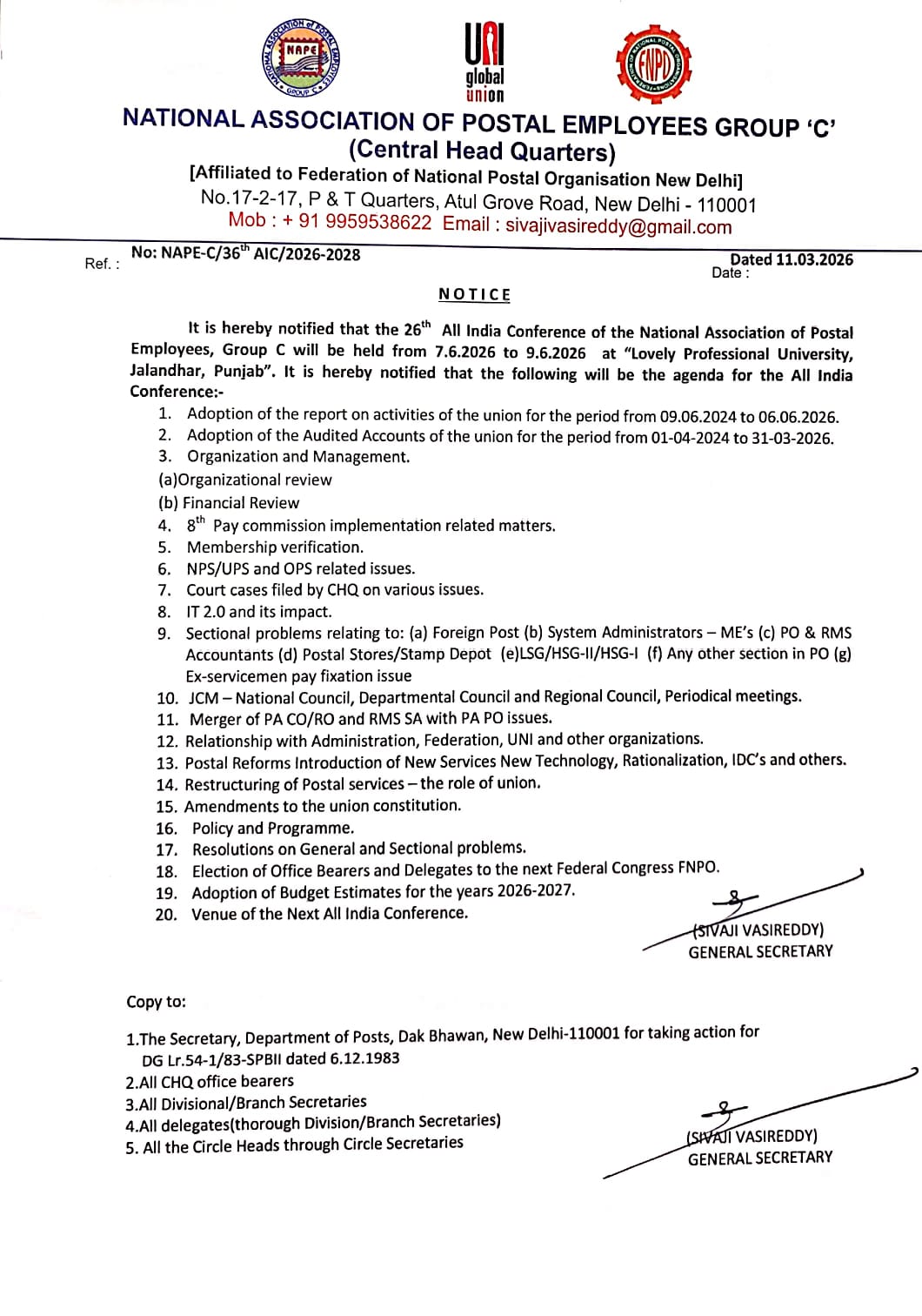 Notice for NAPEc 26th All India Conference 13th at Lovely Professional University, Jalandhar on 7, 8, 9 June 202611/03/2026