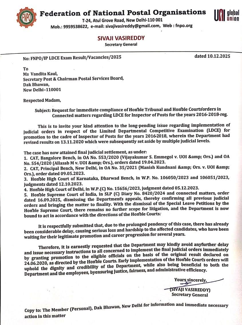 IP LDCE results case of 2016-18 various court cases ..letter from SG FNPO to Secretary.